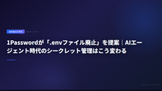 301Passwordが「.envファイル廃止」を提案|AIエージェント時代のシークレット管理はこう変わる 1Passwordが.envファイルの代替となるUnified Accessプラットフォームを発表。AIコーディングエージェントにAPIキーが漏れるリスクと、SDK・CLI・短命トークンによる解決策を解説。 2026.03.1930