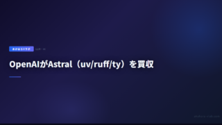 25OpenAIがAstral(uv/ruff/ty)を買収|Pythonエコシステムへの影響とOSS継続方針 OpenAIがPythonツールチェーン「uv」「ruff」「ty」を開発するAstralを買収。AstralチームはCodexチームに合流し、OSSとしての開発継続を表明。Simon Willisonの分析とともに影響を解説します。 2026.03.2725
