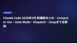 5Claude Code 2026年3月 新機能まとめ|Computer Use・Auto Mode・Dispatch・/loopまで全解説 2026年3月のClaude Code新機能を完全網羅。Computer Use(macOS操作)・Auto Mode(自律実行)・Dispatch(スマホ連携)・/loop(定期実行)など大型機能4選+v2.1.64〜v2.1.88の全アップデートを解説。 2026.03.315