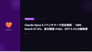 LLMClaude Opus 4.7ベンチマーク完全解説 — SWE-bench 87.6%、視覚精度+44pt、GPT-5.4との勝敗表 Claude Opus 4.7の全ベンチマークを解説。SWE-bench 87.6%、視覚精度XBOW +44pt、GPT-5.4・Gemini 3.1 Proとの直接比較表、開発者が知るべき強み・弱みを網羅。 2026.04.17LLM