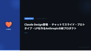 AI・自動化Claude Design登場 — チャットでスライド・プロトタイプ・LPを作るAnthropicの新プロダクト Anthropic LabsがClaude Designを公開。Opus 4.7ベースでプロンプトからプロトタイプ・スライド・LP・マーケティング資料を生成。Canva/PPTX/HTML出力対応。 2026.04.19AI・自動化