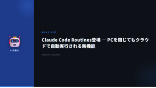 AI・自動化Claude Code Routines登場 — PCを閉じてもクラウドで自動実行される新機能 Claude Code Routinesはプロンプト+リポジトリ+コネクタをセットにしたクラウド常駐型の自動化機能。PCオフでもスケジュール・API・GitHubイベントで自動実行される。プラン別制限と使い方を解説。 2026.04.16AI・自動化