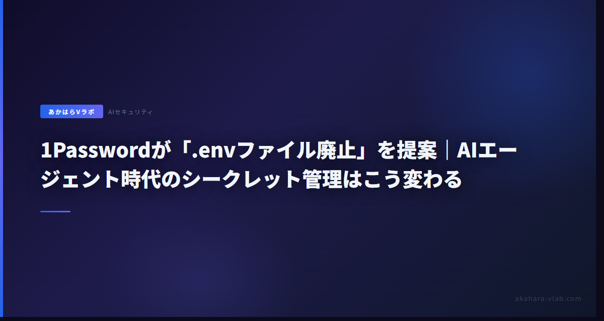 1Passwordが「.envファイル廃止」を提案|AIエージェント時代のシークレット管理はこう変わる