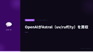 25OpenAIがAstral(uv/ruff/ty)を買収|Pythonエコシステムへの影響とOSS継続方針 OpenAIがPythonツールチェーン「uv」「ruff」「ty」を開発するAstralを買収。AstralチームはCodexチームに合流し、OSSとしての開発継続を表明。Simon Willisonの分析とともに影響を解説します。 2026.03.2725