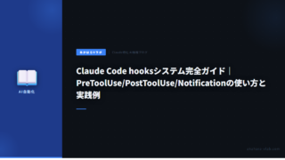 AI・自動化Claude Code hooksシステム完全ガイド|PreToolUse/PostToolUse/Notificationの使い方と実践例 Claude Codeのhooksシステムを徹底解説。PreToolUse・PostToolUse・Notification・Stopの4種類の使い方から、Slack通知・自動テスト・危険コマンドブロックまで実践的な設定例を紹介。 2026.03.10AI・自動化