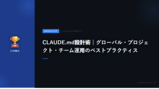 AI・自動化CLAUDE.md設計術|グローバル・プロジェクト・チーム運用のベストプラクティス Claude CodeのCLAUDE.mdを徹底解説。グローバル設定・プロジェクト設定・サブディレクトリ設定の使い分けから、チーム運用のルール設計、書くべき内容・書かない方がいい内容まで実践的に解説。 2026.03.10AI・自動化