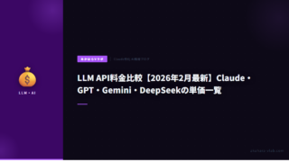 25LLM API料金比較【2026年2月最新】Claude・GPT・Gemini・DeepSeekの単価一覧 主要LLM APIの料金を徹底比較。Claude Opus/Sonnet/Haiku、GPT-5.2/4o、Gemini Pro/Flash、DeepSeek V3の入出力単価・コンテキスト長・無料枠を一覧で解説。 2026.03.1125