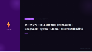 25オープンソースLLM勢力図【2026年2月】DeepSeek・Qwen・Llama・Mistralの最新状況 2026年2月時点のオープンソースLLM勢力図を解説。DeepSeek V3.2、Qwen3、Llama 4、Mistral Large 3、RWKV-7、GLM-5の特徴・性能・ライセンスを比較します。 2026.03.1125