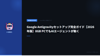 5Google Antigravityセットアップ完全ガイド【2026年版】8GB PCでもAIエージェントが動く Google Antigravityのインストールから初期設定、Discord/Slack連携、BAN対策まで完全解説。8GBの低スペックPCでもAIエージェントが使える環境を構築する方法を紹介します。 2026.03.115