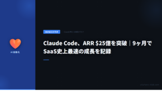 5Claude Code、ARR $25億を突破|9ヶ月でSaaS史上最速の成長を記録 Claude CodeのARRが25億に到達。ゼロから9ヶ月でSaaS史上最速の成長を達成したAnthropicの驚異的なビジネス拡大と、開発者ツール市場への影響を解説。 2026.03.115
