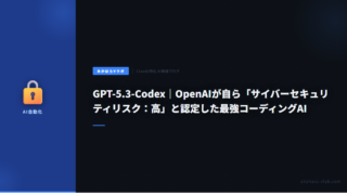5GPT-5.3-Codex|OpenAIが自ら「サイバーセキュリティリスク:高」と認定した最強コーディングAI OpenAIがリリースしたGPT-5.3-Codexは、自社の安全性評価で史上初の「サイバーセキュリティリスク:高」判定。自律的なサイバー攻撃能力を持つ最強コーディングAIの実態。 2026.03.115