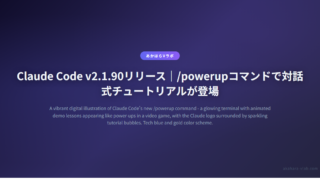 5Claude Code v2.1.90リリース|/powerupコマンドで対話式チュートリアルが登場 Claude Code v2.1.90リリース|/powerupコマンドで対話式チュートリアルが登場 2026年4月1日、Claude Code v2.1.90がリリースされた。今回のアップデートで注目なのは、ユーザーが機能を「体験しながら... 2026.04.035
