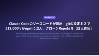 30Claude Codeのソースコードが流出|gitの設定ミスで512,000行がnpmに混入、クローンRepo紹介【自己責任】 Claude Codeのソースコードが流出|gitの設定ミスで512,000行がnpmに混入 2026年3月31日深夜、Claude Code v2.1.88のnpmパッケージにgitの設定ミスでソースマップファイルが混入し、約512,00... 2026.04.0330