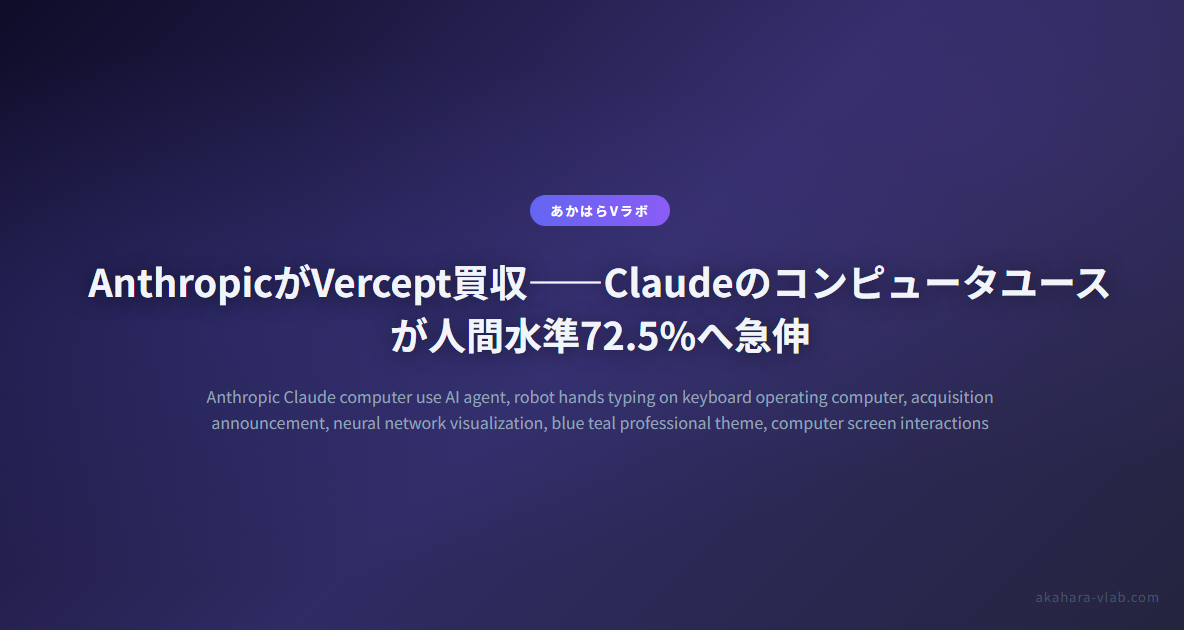 Anthropicが2026年2月25日、AI知覚・インタラクション専門のスタートアップVerceptを買収したと発表しました。この買収により、ClaudeのOSWorldベンチマークスコアは15%未満から72.5%へ急伸し、スプレッドシート操作やウェブフォーム入力においてほぼ人間水準に到達しています。