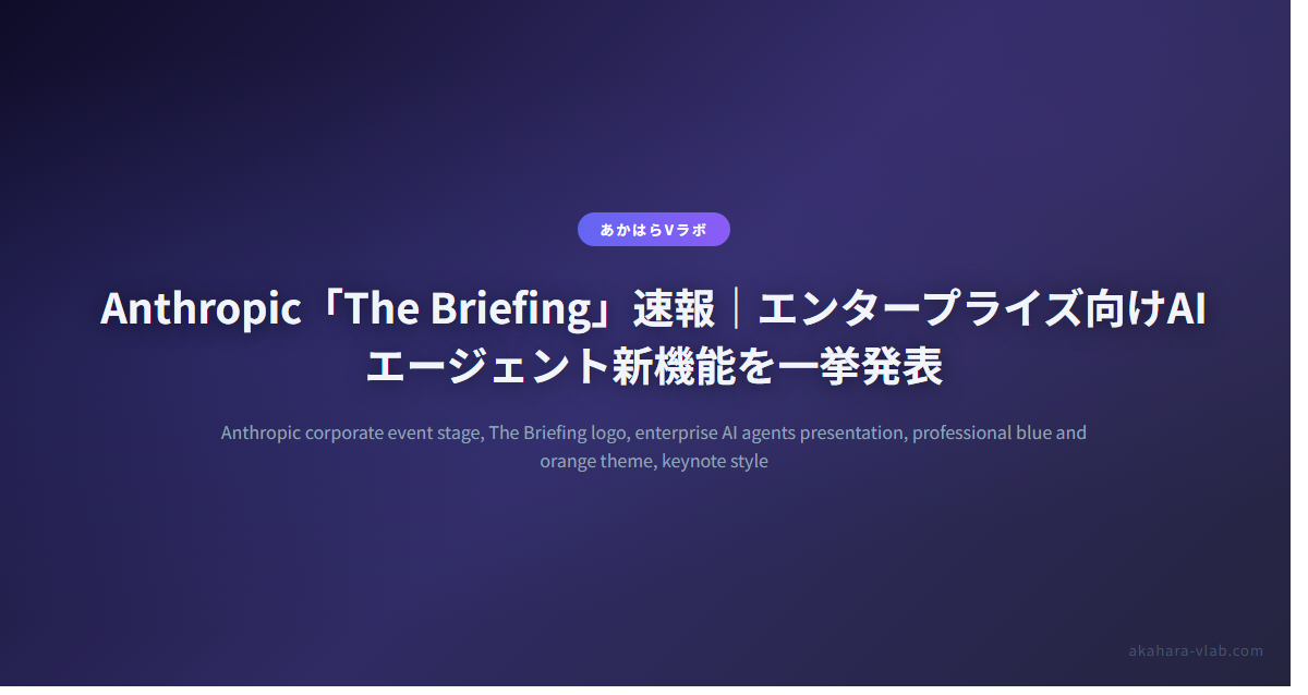 2026年2月24日、Anthropicがニューヨークでエンタープライズイベント「The Briefing: Enterprise Agents」を開催した。CIO・CROといった企業の意思決定者を招待した招待制イベントで、基調講演はライブ配信も実施された。