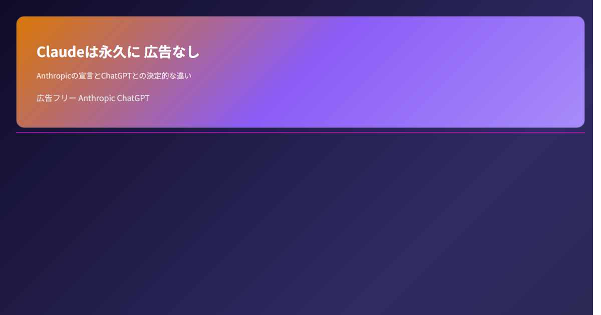 OpenAIがChatGPTに広告を入れ始めたのと、Anthropicが「広告なし」を宣言したのは、ほぼ同じ時期。偶然ではない。