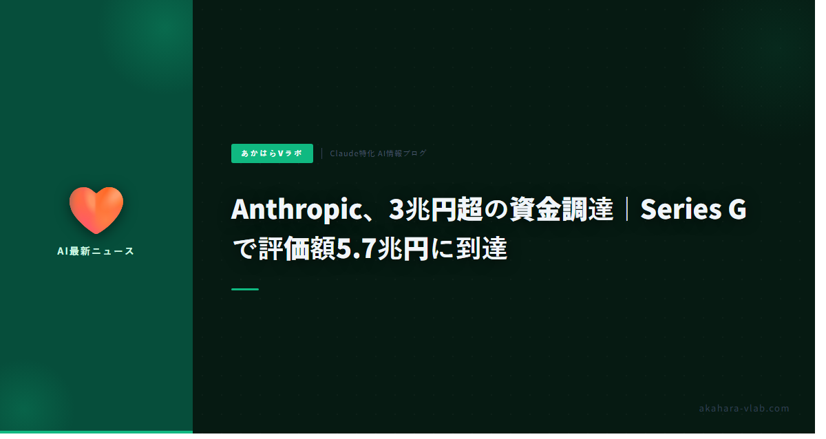 # Anthropic、3兆円超の資金調達|Series G で評価額5.7兆円に到達