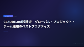 AI・自動化CLAUDE.md設計術|グローバル・プロジェクト・チーム運用のベストプラクティス Claude CodeのCLAUDE.mdを徹底解説。グローバル設定・プロジェクト設定・サブディレクトリ設定の使い分けから、チーム運用のルール設計、書くべき内容・書かない方がいい内容まで実践的に解説。 2026.03.10AI・自動化