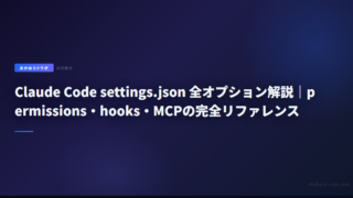 AI・自動化Claude Code settings.json 全オプション解説|permissions・hooks・MCPの完全リファレンス Claude CodeのsettingsJsonを完全解説。permissions(allow/deny)、hooks(PreToolUse/PostToolUse)、mcpServers、env設定まで全オプションを実例付きで解説。グローバルとプロジェクト設定の使い分けも。 2026.03.10AI・自動化