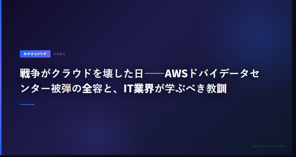 戦争がクラウドを壊した日——AWSドバイデータセンター被弾の全容と、IT業界が学ぶべき教訓