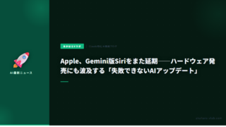 5Apple、Gemini版Siriをまた延期——ハードウェア発売にも波及する「失敗できないAIアップデート」 AppleがGemini搭載の新Siriを再延期。iOS 26.4での導入を断念し、iOS 26.5(5月以降)またはiOS 27(9月)に先送り。スマートホームデバイス「J490」の発売計画にも影響が出ている。 2026.03.175