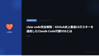 5claw-code完全解説|GitHub史上最速10万スターを達成したClaude Code代替OSSとは GitHub史上最速10万スターのclaw-codeを完全解説。Claude Codeのクリーンルーム再実装とは何か、使い方・インストール・法的リスク・実際の活用事例(医師・弁護士)まで詳しく紹介。 2026.04.035