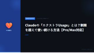 5Claudeの「エクストラUsage」とは?制限を超えて使い続ける方法【Pro/Max対応】 Claude Pro/Maxプランの「エクストラUsage(Extra Usage)」と「Usage Bundles」を解説。月間制限を超えた後も継続利用できる仕組み、設定場所、料金体系(最大30%オフ)をわかりやすく紹介。 2026.04.055