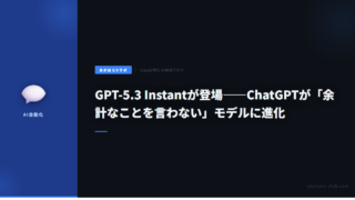 5GPT-5.3 Instantが登場——ChatGPTが「余計なことを言わない」モデルに進化 OpenAIがGPT-5.3 Instantをリリース。不要な拒否を削減し、ハルシネーションを最大26.8%削減。APIはgpt-5.3-chat-latestで利用可能。日本語対応は今後の改善予定。 2026.03.115