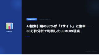 5AI検索引用の80%が「1サイト」に集中——80万件分析で判明したLLMOの現実 80万件のAI検索引用データを分析した結果、50カテゴリ中8カテゴリでトップサイトへの引用率が80%超。公式サイトより比較メディアが引用され、1記事が70%の引用を占めるケースも。LLMOの実態を解説。 2026.03.115