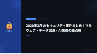 52026年2月 AIセキュリティ事件まとめ|マルウェア・データ漏洩・AI悪用の総点検 2026年2月に起きたAIセキュリティ事件をまとめて解説。PromptSpy自律マルウェア、Claude悪用データ窃取、AIチャット3億件漏洩など開発者が知るべき8大事件。 2026.03.115