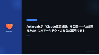 5Anthropicが「Claude認定試験」を公開——AWS資格みたいにAIアーキテクト力を公式証明できる AnthropicがClaude専用認定試験「Claude Certified Architect – Foundations」を公開。60問120分・合格720/1000点。エージェント設計・MCP・Claude Codeを問う本格的な資格。Anthropic Academyの無料コース13本で準備可能。 2026.03.175