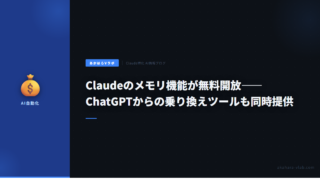 5Claudeのメモリ機能が無料開放——ChatGPTからの乗り換えツールも同時提供 Claudeのメモリ機能が無料プランでも利用可能に。会話の文脈を記憶し次回に引き継ぐ機能と、ChatGPT・Geminiからの移行ツールの使い方を解説します。 2026.03.115