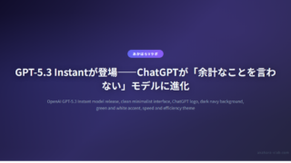 AI・自動化GPT-5.3 Instantが登場——ChatGPTが「余計なことを言わない」モデルに進化 OpenAIがGPT-5.3 Instantをリリース。不要な拒否を削減し、ハルシネーションを最大26.8%削減。APIはgpt-5.3-chat-latestで利用可能。日本語対応は今後の改善予定。 2026.03.06AI・自動化