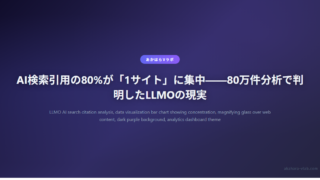 AI・自動化AI検索引用の80%が「1サイト」に集中——80万件分析で判明したLLMOの現実 80万件のAI検索引用データを分析した結果、50カテゴリ中8カテゴリでトップサイトへの引用率が80%超。公式サイトより比較メディアが引用され、1記事が70%の引用を占めるケースも。LLMOの実態を解説。 2026.03.06AI・自動化