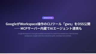 AI・自動化GoogleがWorkspace操作のCLIツール「gws」をOSS公開——MCPサーバー内蔵でAIエージェント連携も GoogleがGoogle Workspace操作のCLIツール「gws」をオープンソースで公開。Gmail・Drive・Sheets・DocsをコマンドラインやAIエージェントから操作可能。MCPサーバー機能内蔵。ただし非公式製品。 2026.03.06AI・自動化