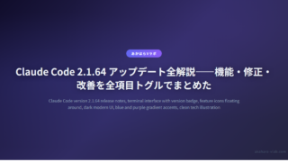 AI・自動化Claude Code 2.1.64 アップデート全解説——機能・修正・改善を全項目トグルでまとめた Claude Code 2.1.64のリリースノートを全解説。永続セッション・Remote Control・Voice STT20言語など機能追加21件、メモリリーク修正を含む修正31件、改善9件をトグル形式で一覧化。 2026.03.08AI・自動化