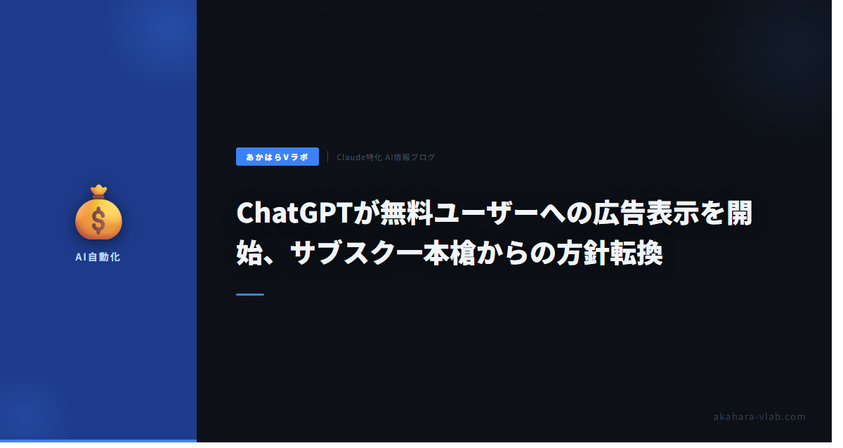 OpenAIがChatGPTに広告を導入することを発表し、米国の無料ユーザーとGoプランユーザーへの表示を開始した。