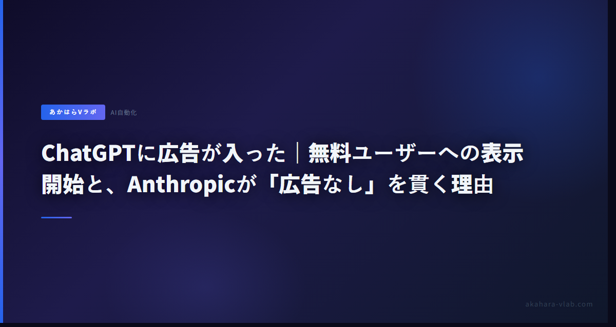 ChatGPTに広告が入った|無料ユーザーへの表示開始と、Anthropicが「広告なし」を貫く理由