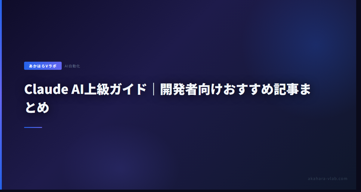 Claude APIを使った開発や本番運用に踏み込みたい人向けに、上級記事をまとめた。英語ドキュメントしかない内容が中心なので、日本語でまとめた価値はあると思う。