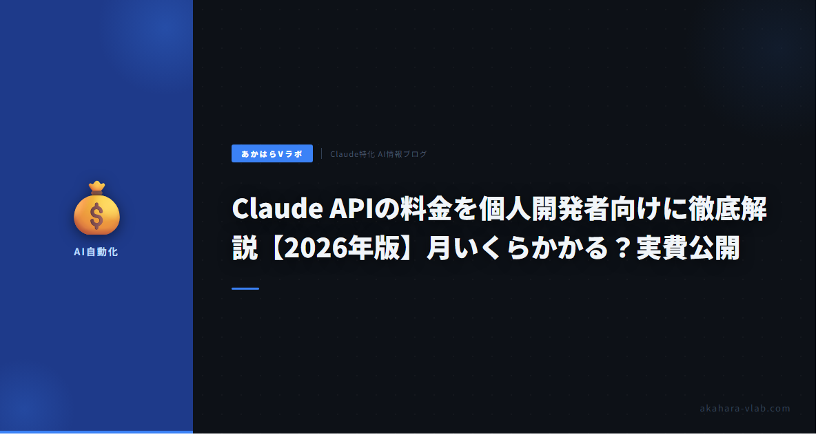 「APIって従量課金で青天井じゃないの?」と不安に思っている方も多いと思います。この記事では実際の計算例を交えながら、個人開発者がClaude APIを使う際の現実的なコスト感を解説します。