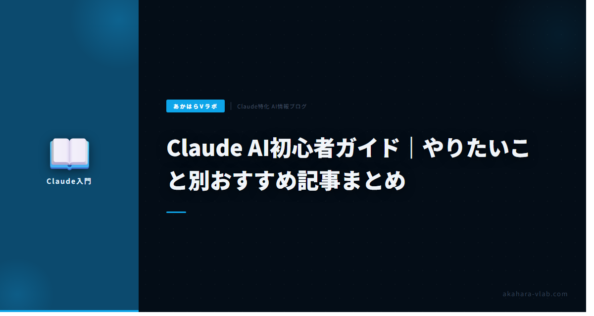 Claude AI関連の記事が増えてきたので、目的別にどの記事を読めばいいか整理した。「とりあえずClaudeを触ってみたい」から「APIでアプリに組み込みたい」まで、レベルと目的に合わせて案内する。