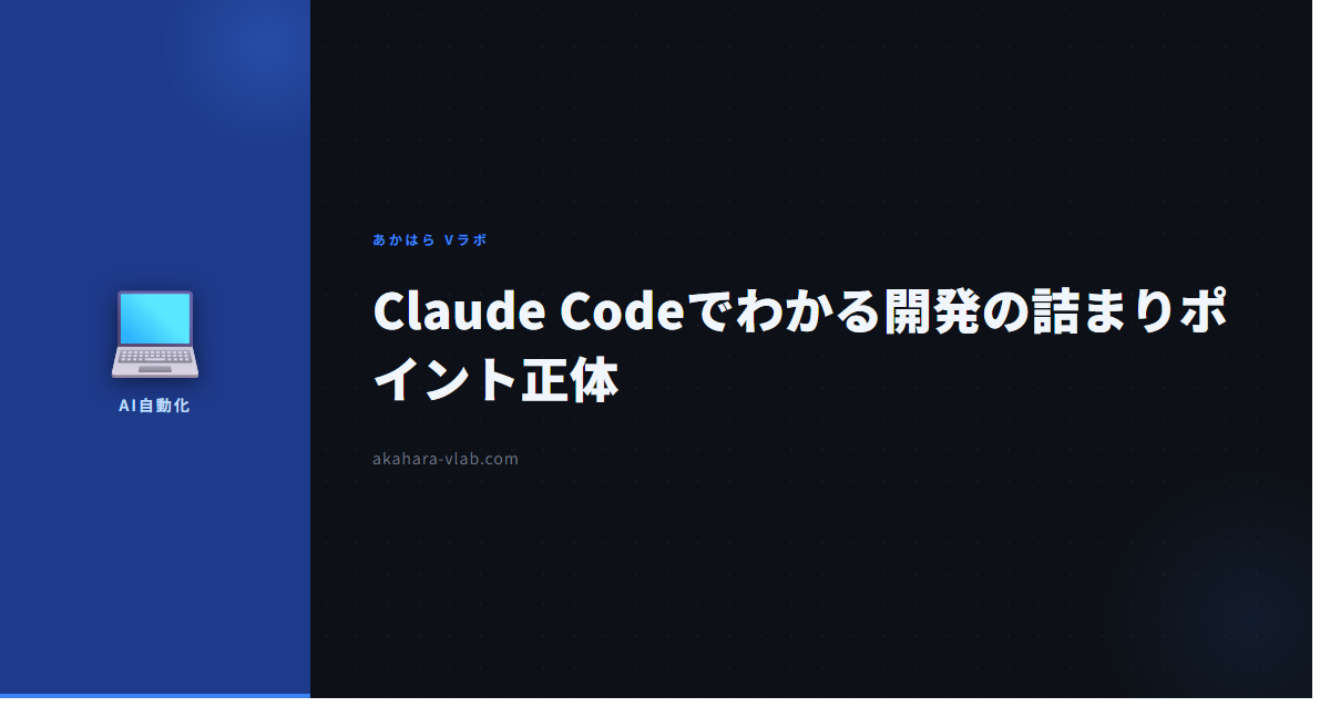 開発で詰まるポイントの正体は「仕様の曖昧さ」「エッジケースの無視」「デバッグのループ」です。Claude Codeを使えば、プロンプトで仕様を明確化し、AIが自動生成・修正。作成したSEOチェッカーとQiitaツールで実証済み。効率10倍向上!(148文字)