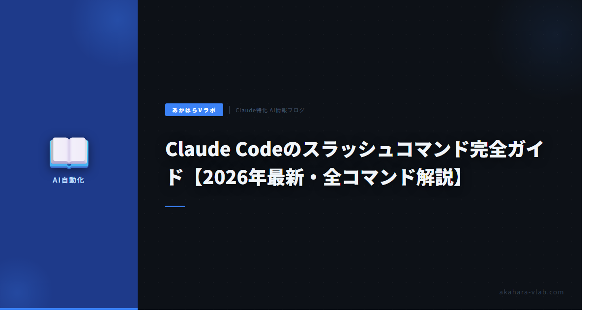 {“@context”: “https://schema.org”, “@type”: “FAQPage”, “mainEntity”: [{“@type”: “Question”, “name”: “Claude Codeのスラッシュコマンドとは何ですか?”, “acceptedAnswer”: {“@type”: “Answer”, “text”: “Claude Codeのターミナル上で `/` で始まる特殊コマンドです。会話履歴のクリア(/clear)、コンテキストの圧縮(/compact)、設定変更(/config)など、Claude Codeの動作を制御するショートカットとして機能します。”}}, {“@type”: “Question”, “name”: “/clearと/compactの違いは何ですか?”, “acceptedAnswer”: {“@type”: “Answer”, “text”: “/clearは会話履歴を完全に削除してコンテキストをゼロにリセットします。/compactは履歴を要約・圧縮してコンテキストウィンドウを節約しながら文脈を維持します。長いセッションでは/compactの方が便利です。”}}, {“@type”: “Question”, “name”: “カスタムスラッシュコマンドは作れますか?”, “acceptedAnswer”: {“@type”: “Answer”, “text”: “はい。`.claude/commands/` ディレクトリにMarkdownファイルを置くと独自のスラッシュコマンドとして使えます。例えば `review.md` を作ると `/review` が使えるようになります。プロジェクト固有の定型作業を自動化するのに便利です。”}}, {“@type”: “Question”, “name”: “/initコマンドは何をしますか?”, “acceptedAnswer”: {“@type”: “Answer”, “text”: “プロジェクトのルートディレクトリに CLAUDE.md ファイルを生成・更新するコマンドです。コードベースを分析して、プロジェクト固有の指示・技術スタック・規約を自動で記述します。Claude Codeを使い始めたプロジェクトで最初に実行するとよいです。”}}]}