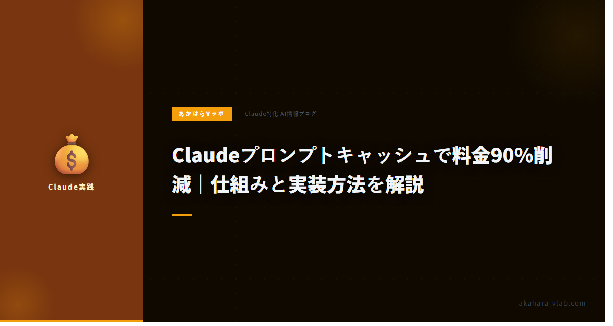 プロンプトキャッシュを使えば、繰り返し送るプロンプト部分のコストを90%削減できる。Anthropicが提供している公式機能で、コードの変更は数行で済む。