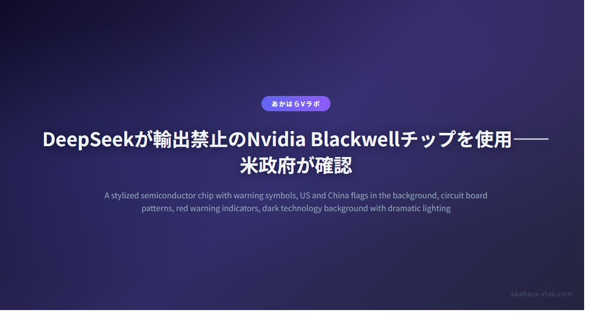 2026年2月24日、トランプ政権の高官がメディアに対して衝撃的な発言をしました。中国のAIスタートアップDeepSeekが、米国の輸出規制で中国向け出荷を禁じられているNvidiaの最新チップ「Blackwell」を使って最新モデルを学習させたと、米国政府として確認したというものです。