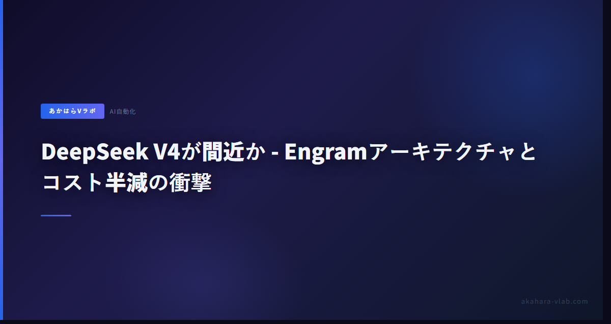 いつリリースされるかは不明だが、市場がV4の動向を注視しているのは確かだ。AIモデルのアーキテクチャ競争は、技術的な話でありながら同時に市場全体を動かす話でもある——そのことをDeepSeekは改めて見せつけようとしているのかもしれない。