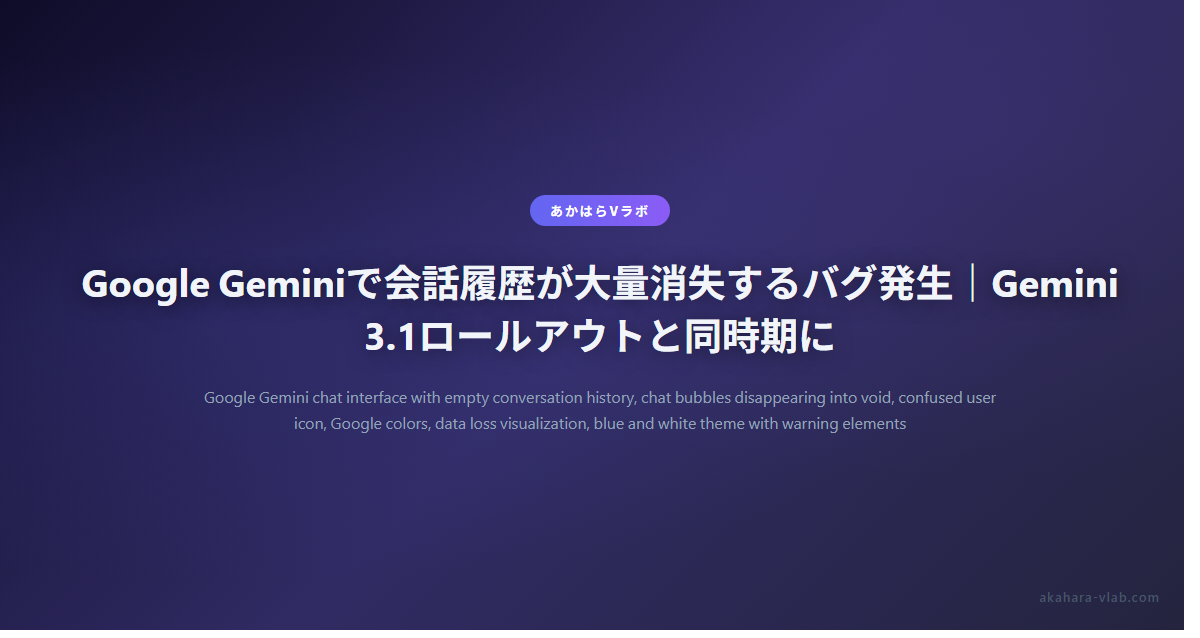 • 2026年2月19日頃からGeminiユーザーの会話履歴大量消失が続出