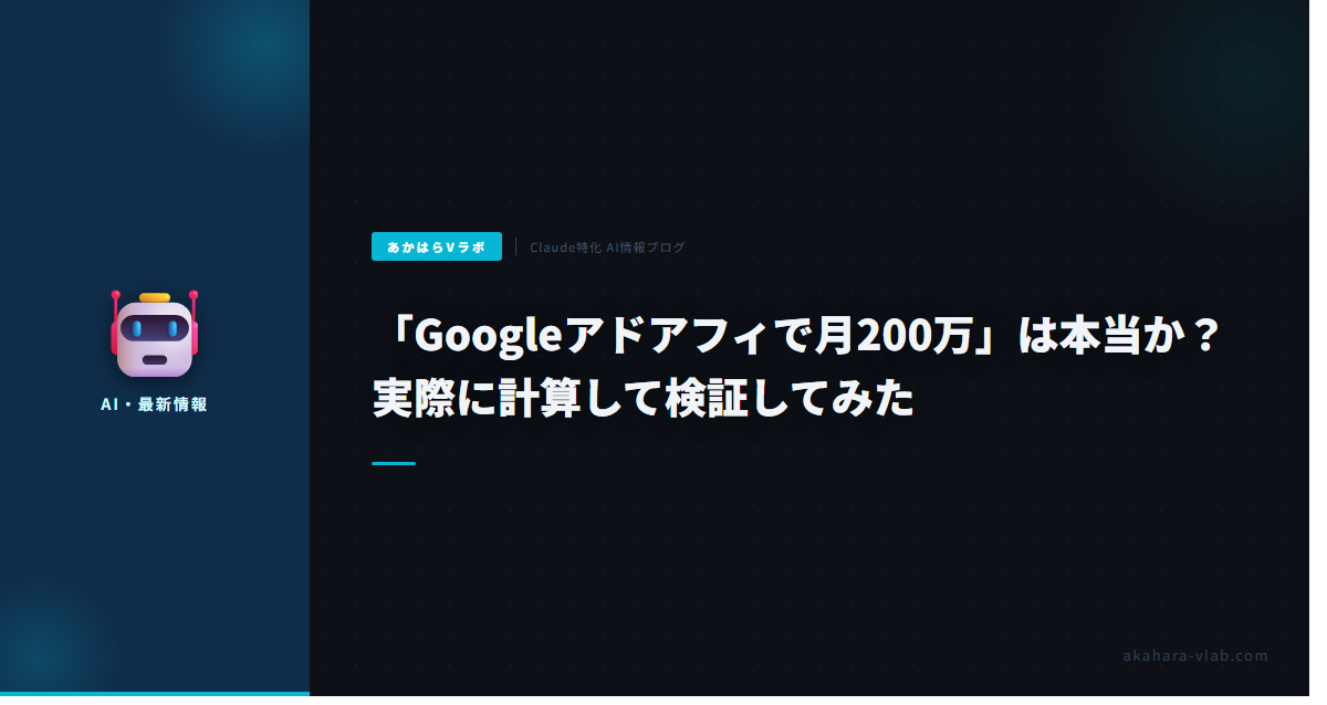 気になったのは、この数字が本当にAdSenseだけで達成可能なのかということ。投稿を鵜呑みにする前に、自分で計算して検証してみることにした。