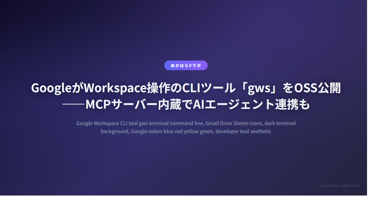 2026年3月6日、GoogleがGoogle Workspaceをコマンドラインから操作できるツール「gws」をオープンソースで公開した。