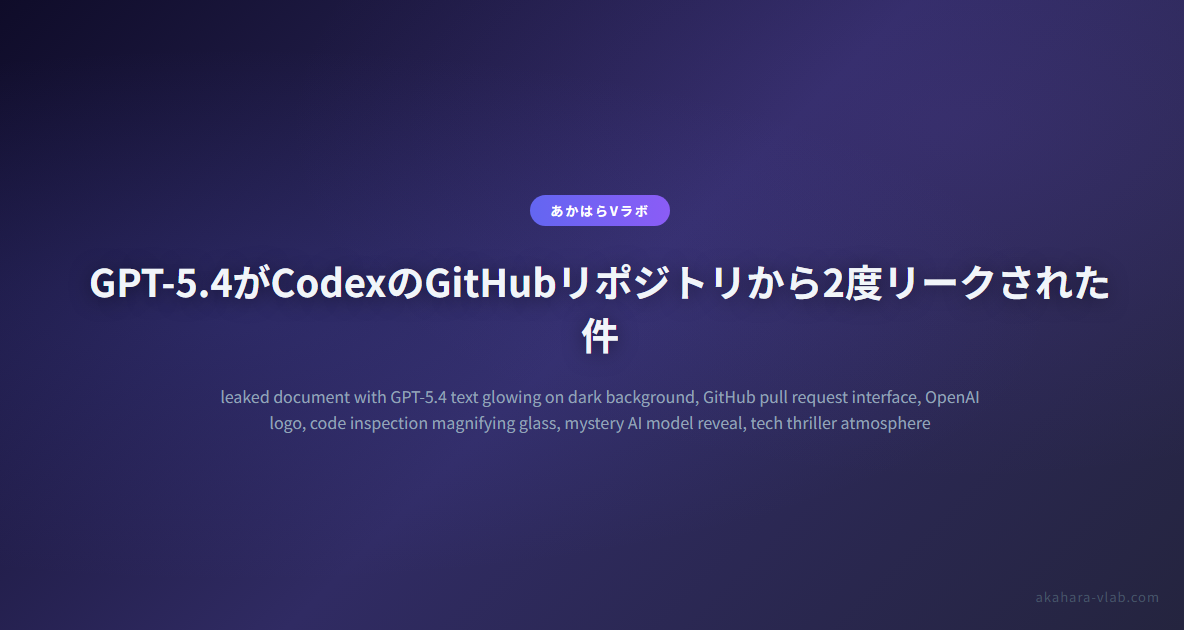 OpenAIの内部開発ツール「Codex」のGitHubリポジトリで、GPT-5.4というモデル名が2度にわたってコードに現れ、フォースプッシュで消された。これを見た開発者たちがスクリーンショットを拡散し、さらにOpenAI従業員がXで誤ってキャプチャを投稿するという、重ね重ねの情報漏洩が起きた。